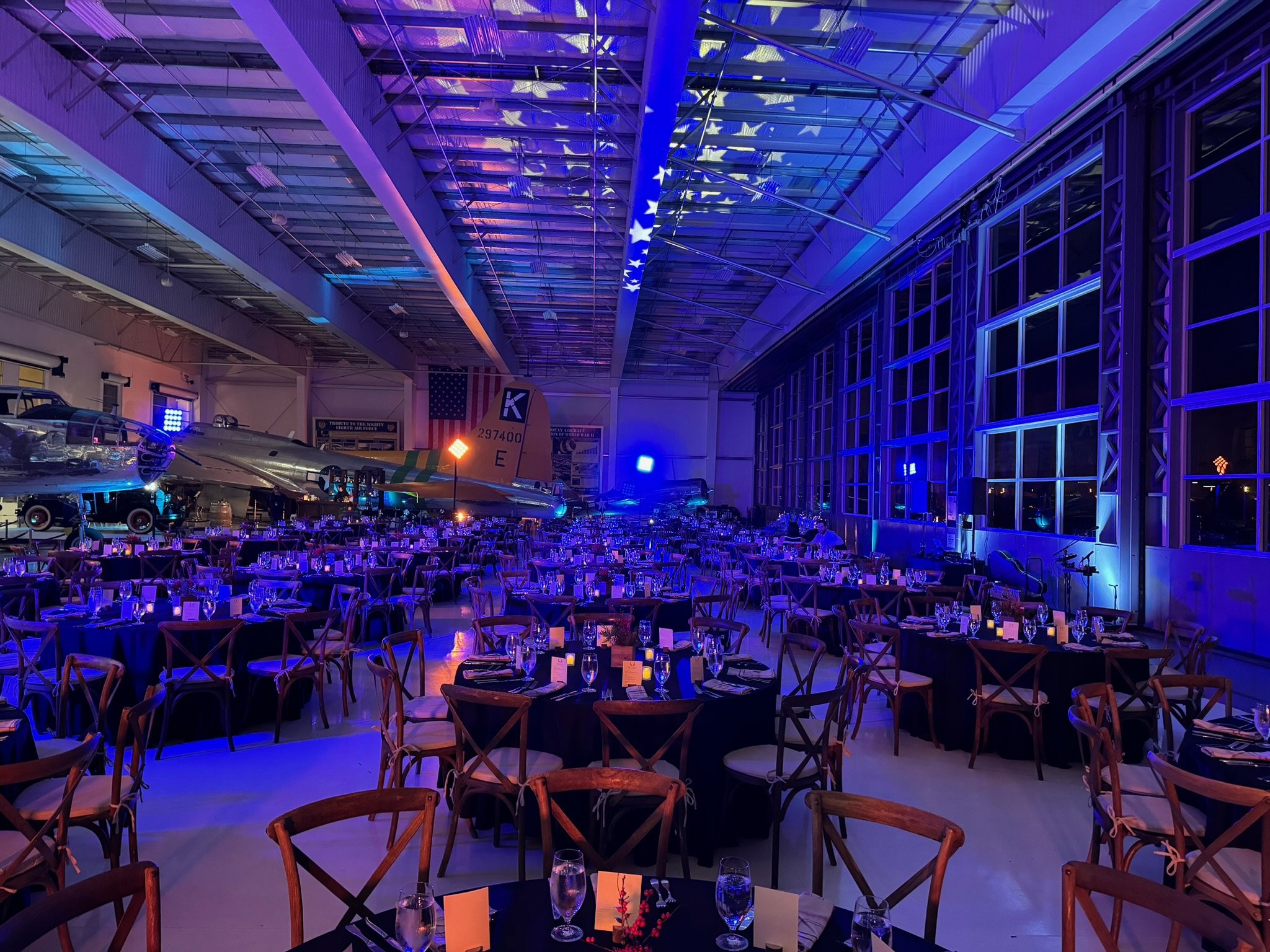 Lighting is key to creating the right atmosphere at your event, from functional to visual appeal. It sets the mood, enhances decor, and directs attention to key elements, like the stage, dance floor, or attractions. Lighting can also be used to compliment and emphasize your theme.
